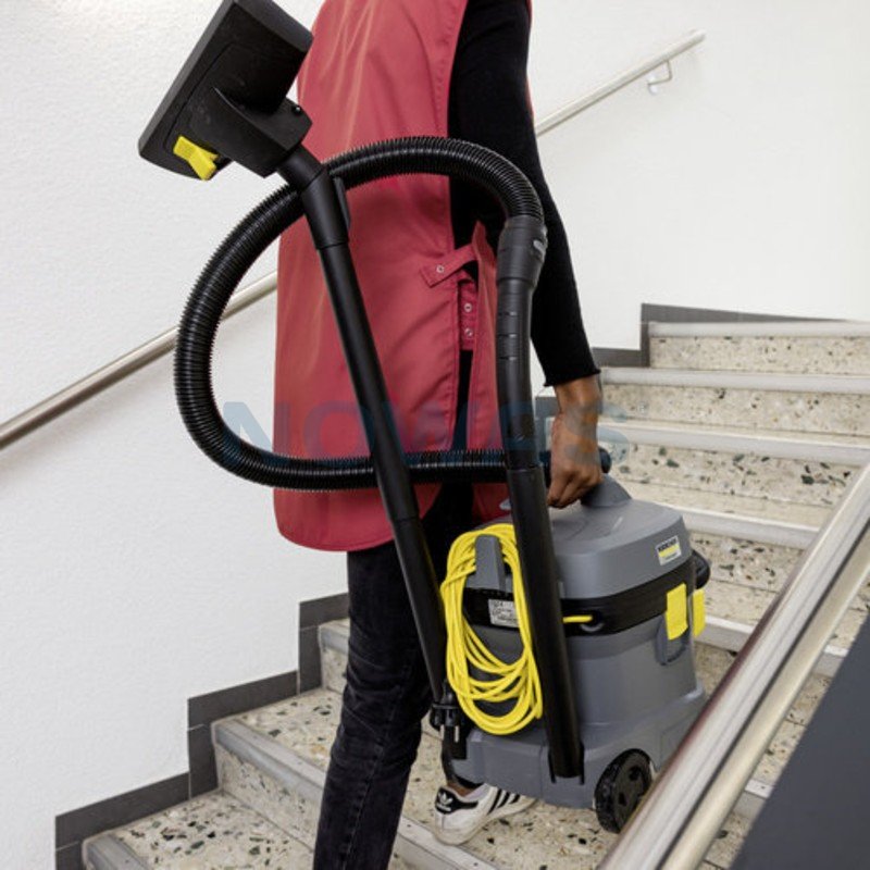 Alsidig og let at transportere takket være den lave vægt på 3,8 kg er vores tørstøvsuger T 11/1 Classic det perfekte valg til professionelle brugere, der ofte skifter arbejdssted. Med en generøs beholdervolumen på 11 liter genererer den kompakte maskine et vakuum på 235 mbar / 23,5 kpa fra 850 W effekt, hvilket garanterer fremragende resultater på kort tid. Støvsugeren arbejder med lav lyd på 61 dB (A), hvilket betyder, at ikke kun brugeren er beskyttet, men også arbejde kan udføres når som helst på dagen i støjfølsomme områder som hospitaler, hoteller mm. En ergonomisk bøjning garanterer lange og træthedsfrie applikationer, selv støvsugning på trapper er ubesværet takket være det integrerede bærehåndtag. Det robuste design af T 11/1 Classic sikrer ikke kun en lang levetid, dens all-round kofanger forhindrer pålideligt, at maskinen vipper. Tilbehør som sugerør og mundstykke kan opbevares komfortabelt på støvsugeren. maskinen leveres med FleeceFilterpose.