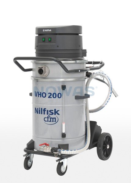 VHO200 er en 2 x 1200 W vådsuger designet til væske, olie/spåner, hvor luftflowet bruges til at presse væsken ud gennem aftapningshanen. Ved brug af slange/pistolkit kan væsken fyldes direkte i ekstern beholder. De to motorer sidder godt beskyttet bag det kraftige polyethylen-dæksel. Ved blot at løsne spændebåndet, kan hele motorhovedet vippes. En rustfri spånkurv til opsamling af spåner fås som tilbehør, sammen med flere forskellige nylonfiltre, som giver brugeren mulighed for at separere og genbruge de opsugede materialer og væsker. Beholderen kan nemt udtages af stellet for rengøring. Med alle disse muligheder kan maskinen bruges i mange forskellige sektorer: Ideel til olieopsamling og genanvendelse ved forarbejdningsmaskiner. Udgaven med rustfri stålbeholder er også velegnet indenfor kemisk/pharmaceutisk og fødevareindustri, hvor end det er nødvendigt at opsuge væsker med forskellige behov for filtrering.