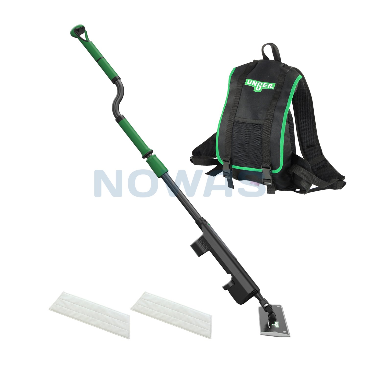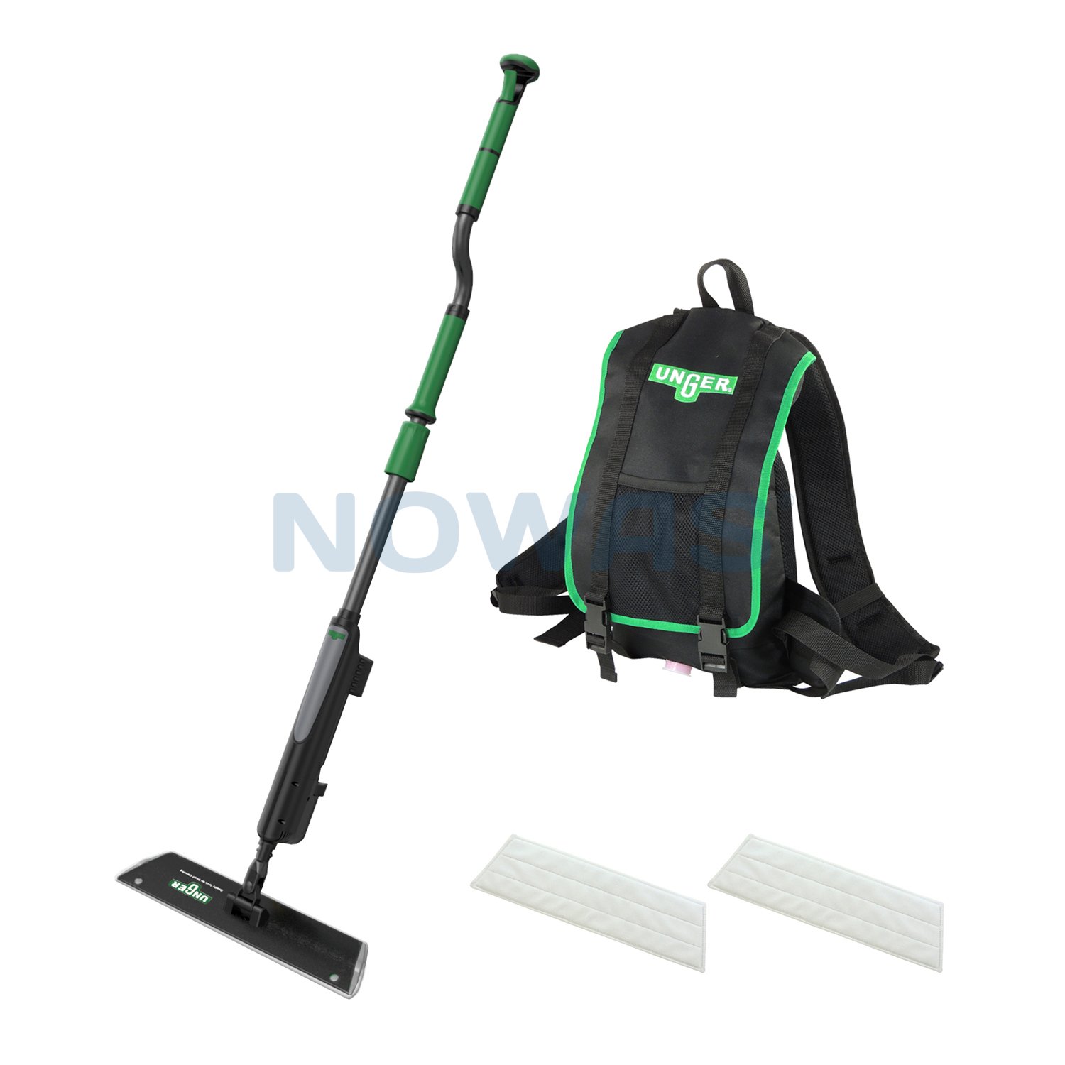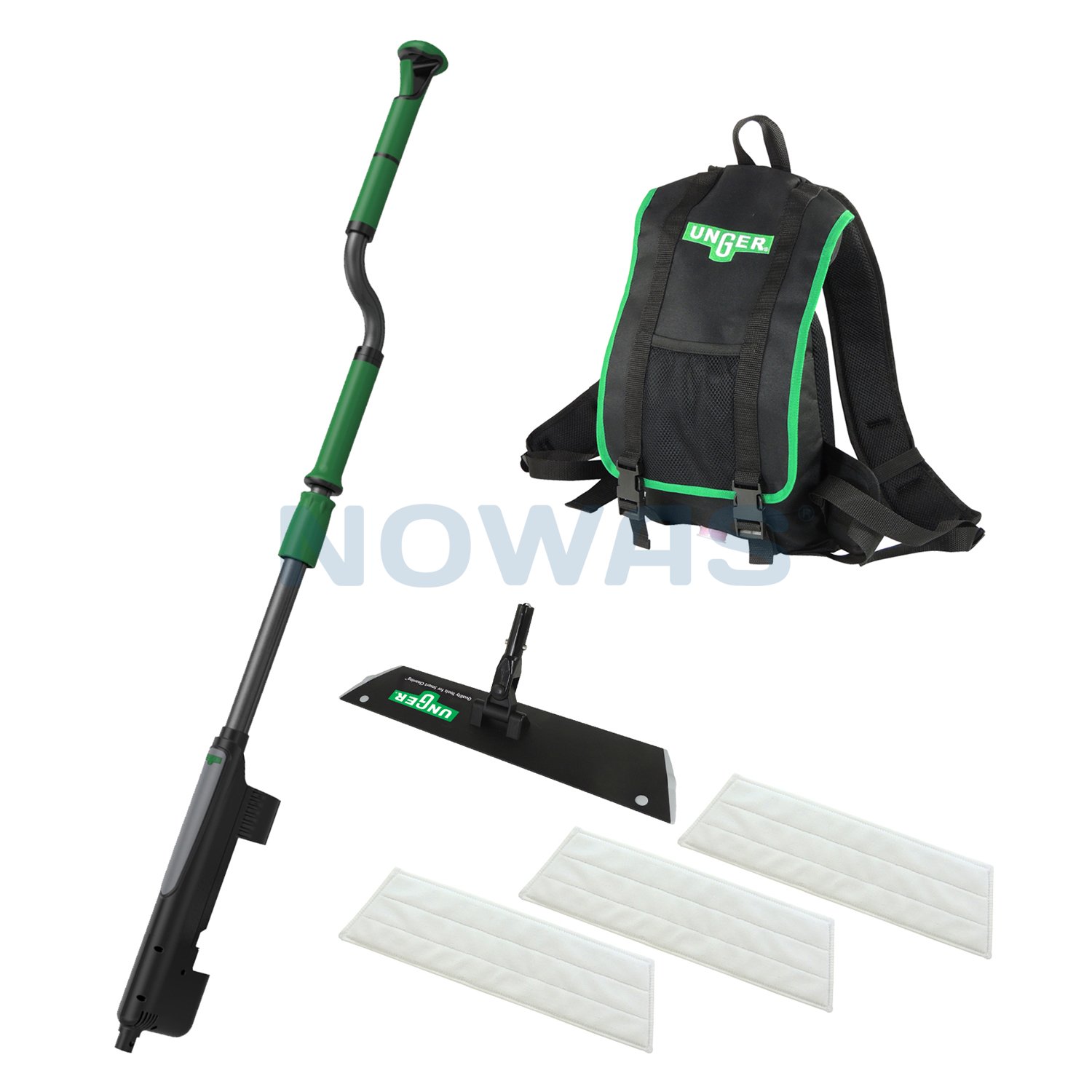 Ungers gulvplejesæt indeholder 1stk. S teleskopstang (S-skaftet indeholder et smart doseringssystem, så man undgår overdosering og derfor sikrer et bedre resultat på gulvene. Skaftet har roterbar håndtag og er fremstillet i S form, for at slide mindre på kroppen. Det unikke design gør det meste af arbejdet, og gør arbejdet nemmere for dig) 3 stk. moppefremfører med velcro + 3 stk. mopper med velcro og et smart backpack system, så du kan få dit gulv til at skinne uden afbrydelser. Backpacken er inklusiv en udskiftningspose 5 L. Og en slange med Pulse-Jet-Unit