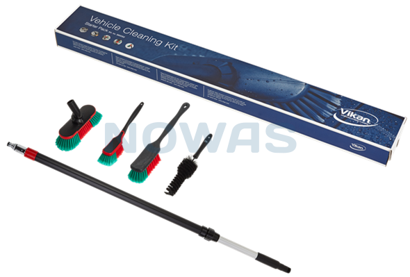 1 stk. 522252 autobørste med langt skaft, bløde/spaltede børstehår. 1 stk. 525252 universel autobørste til små områder. 1 stk. 526852 autobørste med vandgennemløb, 250 mm, bløde/spaltede børstehår. 1 stk. 525052 fælgbørste, 65 mm, sort. 1 stk. 297452C alu teleskopskaft med vandgennemløb og on/off funktion til vand samt click-kobling, 1060 - 1600 mm. Kompatibel med Gardena og Nito Click.