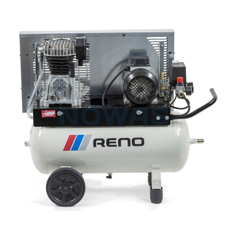 Enfaset semi-professionel stempelkompressor. Lille, robust enfaset kompressor med 2 cylindere i støbejern til mindre opgaver på fx værkstedet eller hos håndværkeren. Smart 250/50 kompressor der kan klare mange små håndværker- og øvrige opgaver. Denne kompressor fra RENO er kompakt og med de smarte hjul, er den designet til at være mobil.