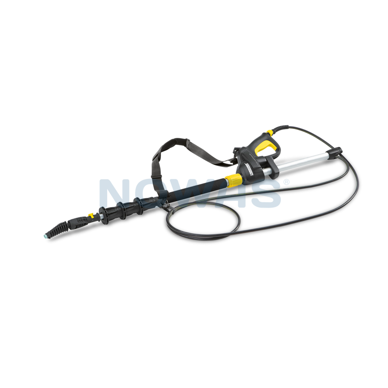 Højtrykslansen kan blive op til 4 meter lang, og kan både give højt og lavt tryk. Kärcher højtrykslanse er nem at anvende og let at transportere, da den er udstyret med skulderrem og har en let vægt.