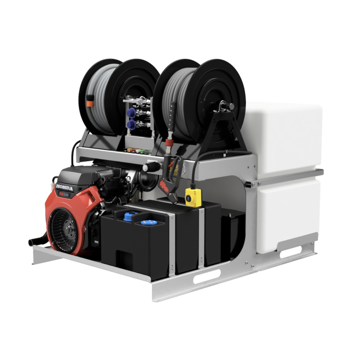 En super kompakt men stærk højtryksløsning med rigeligt af power til servicevirksomheden der ønsker et effektiv højtrykrenser-anlæg - selv i en mindre varebil.