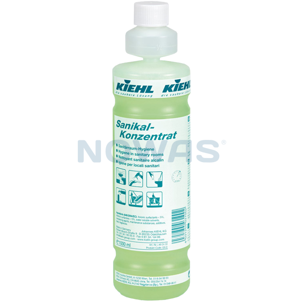 Sanikal Konzentrat er et koncentreret syre- klorfri sanitetsrengøringsmiddel til anvendelse på alle overflader i sanitære områder. Fjerner kalk og kalksæbe efterladenskaber, olie og fedt rester. Sanikal-Konzentrat anvendes på alle vandfaste overflader og genstande i sanitære områder.