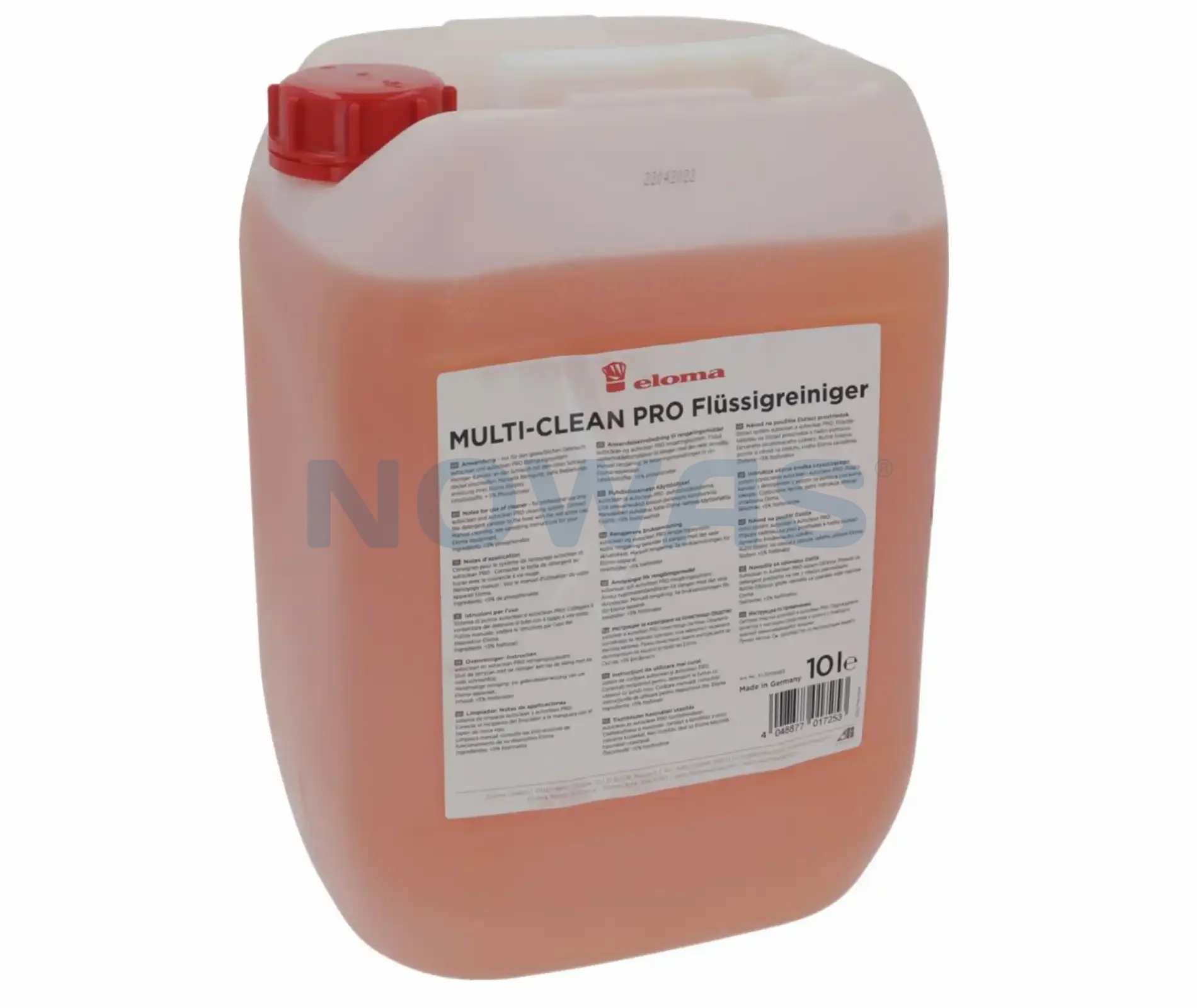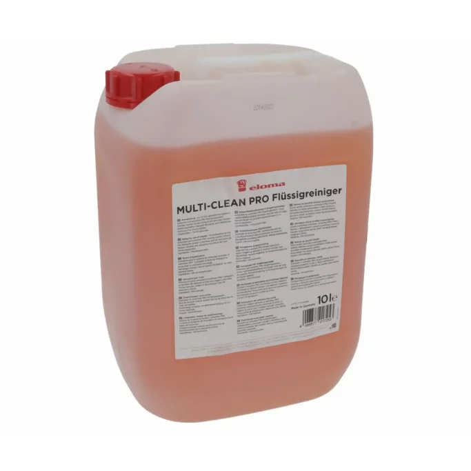 Eloma Multi-Clean Pro 10 L er en kraftfuld og professionel rengøringsvæske specielt udviklet til vedligehold og rengøring af Eloma-kombidampere med automatisk rengøringsfunktion ("Autoclean"). Produktet er tilpasset til både automatisk dosering i maskinen og manuel rengøring, og sikrer en grundig fjernelse af indbrændt snavs, fedt og øvrige rester, så udstyret fungerer optimalt i daglig drift.
