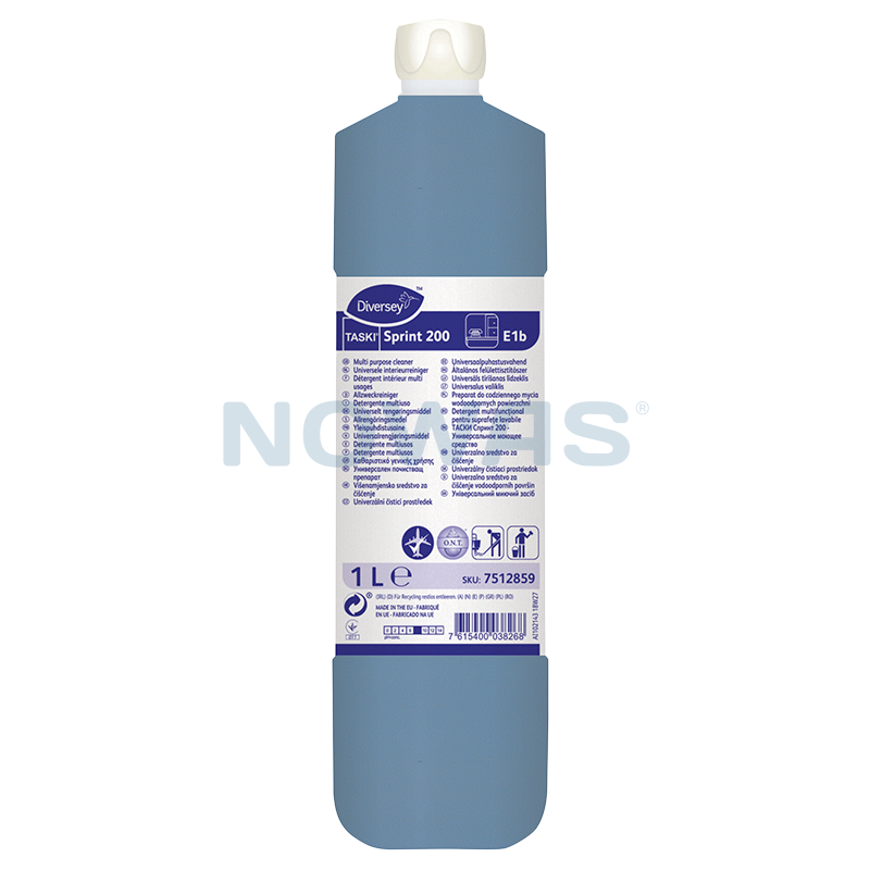 Taski Sprint 200 er et universelt rengøringsmiddel med stribefri optørring til daglig brug på vaskbare overflader, der tåler vand. Et pH-neutralt rengøringsmiddel med frisk duft og hurtigtvirkende egenskaber. Taski Sprint 200 er velegnet til rengøring med gulvvaskemaskiner og manuel vask. Universelt rengøringsmiddel med parfume til daglig rengøring af alle overflader, der tåler vand, inklusive vinduer, spejle, glaseret keramik og plastikoverflader.