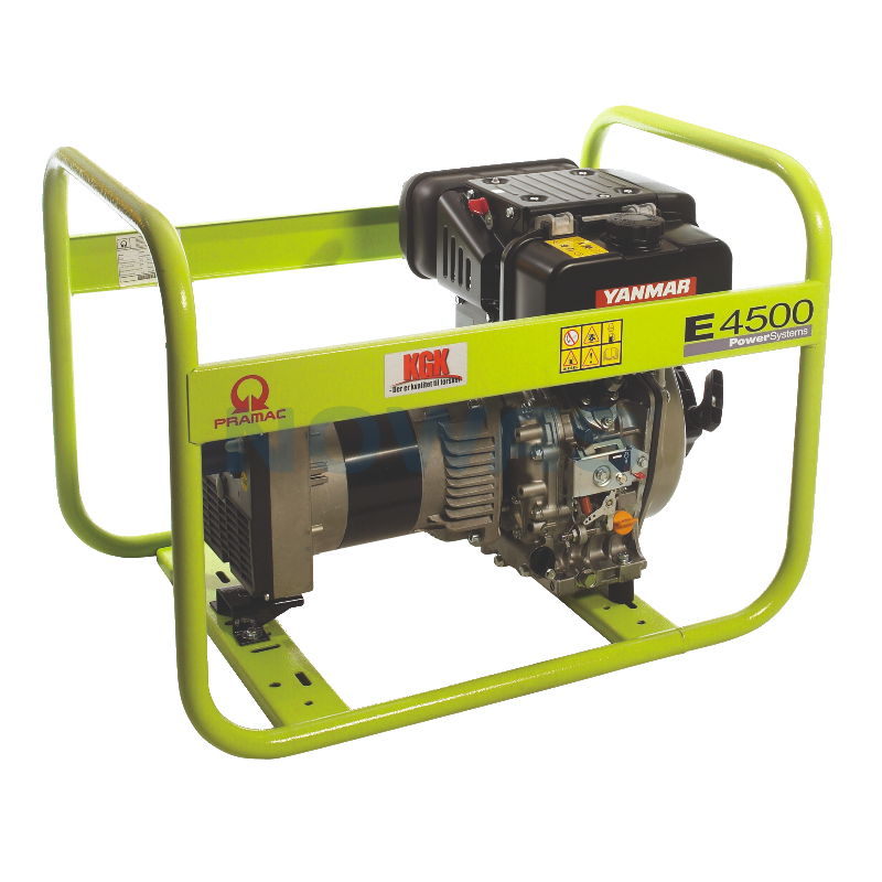 Generator E4500 SYHDI. 4-takt luftkølet Yanmar dieselmotor. Enkelt og økonomisk generatoranlæg, som er let at betjene og egner sig til et utal af apparater og værktøjer.