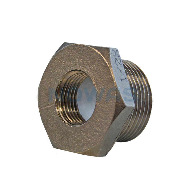 Spidsmuffe i rustfri stål. 1/2" udv. gevind - 1/4" Indv. gevind.