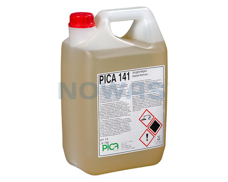 PICA 141 er en alkalisk graffitifjerner, som er en særdeles effektiv skyggefjerner og farveopløser til de fleste materialer. Produktet anvendes til at fjerne meget besværlige restskygger efter grafittifjernelse. Opløser olie- og alkydmaling, vandbaseret lak, tusch og tørrende olier til trykfarver.