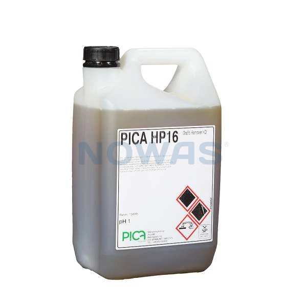 Pica HP 16 er et meget potent syrebaseret graffitifjernelsesmiddel. Pica HP 16 bruges som startkemikalie på de farver, som ikke er opløselige med alkaliske opløsningsmidler, gammel sværopløst graffiti samt til at ætse fastbrændt graffiti.