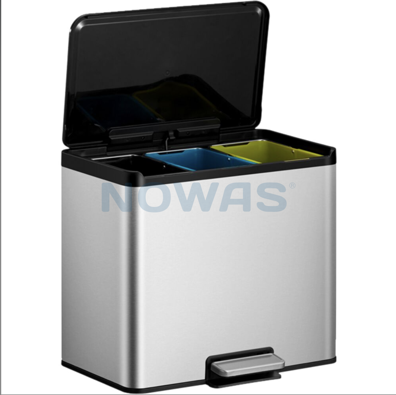 Pedalspanden rummer 27 liter fordelt på 3 separate rum, hver på 9 liter, hvilket gør det nemt at sortere affaldet korrekt og effektivt. Den praktiske plastik inderspand gør det let at tømme og rengøre. Et smart design giver mulighed for at stille låget i åben position, så du nemt kan rengøre eller tømme spanden uden besvær.