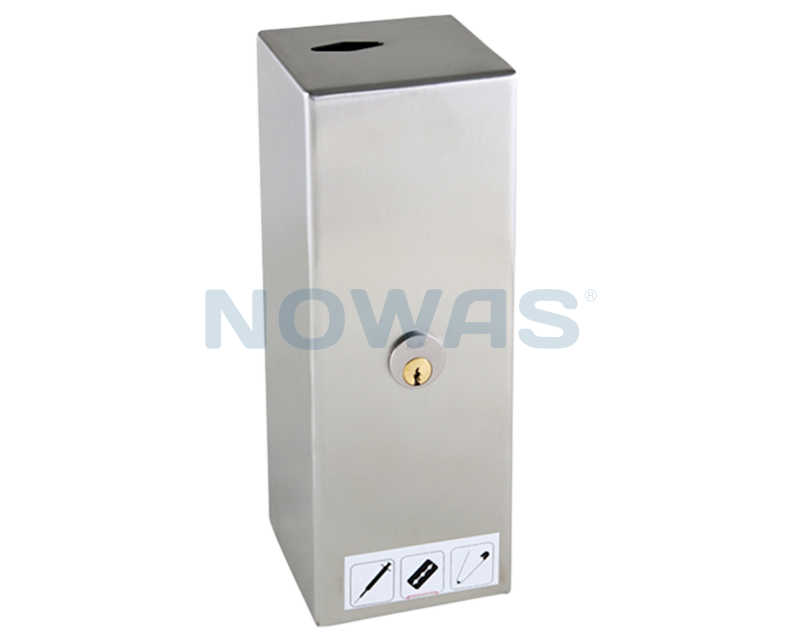 Kanylebeholderen består af en ydre metalboks med låge og lås. Indeni indsættes en engangskanylebeholder i solidt plastmateriale. Kanyleflasken har advarsler præget i det kraftige skruelåg. Anvendes på offentlige steder som en sikkert måde at kunne opbevare kanyleaffald. Kanyleboksen er simpel at montere og sikker at tømme.