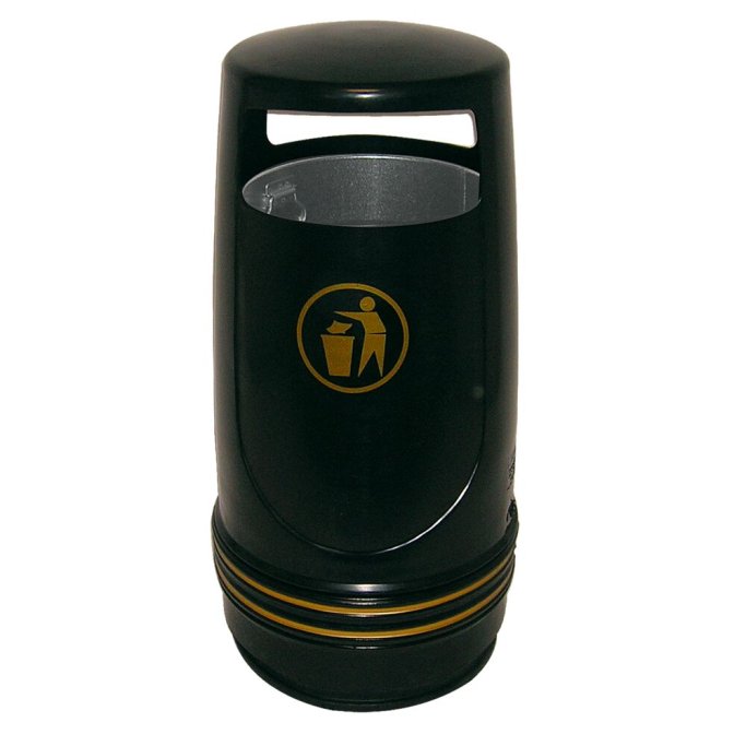 Udendørs affaldsspand, Merlin, 90L, med inderspand i metal, sort, til tungt affald