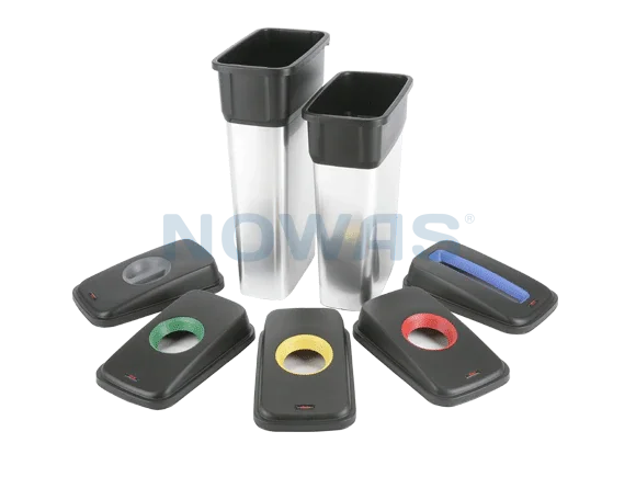 Geo er den fleksible løsning til såvel affalds- og genbrugssortering. Geo låg fås i forskellige typer, som er farvekodede for effektiv genbrugssortering (til papir, dåser, etc., samt heldækkende låg med håndtag).