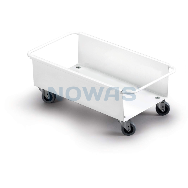 Trolley i hvidlakteret metal. Denne vogn har 4 svingbare hjul.