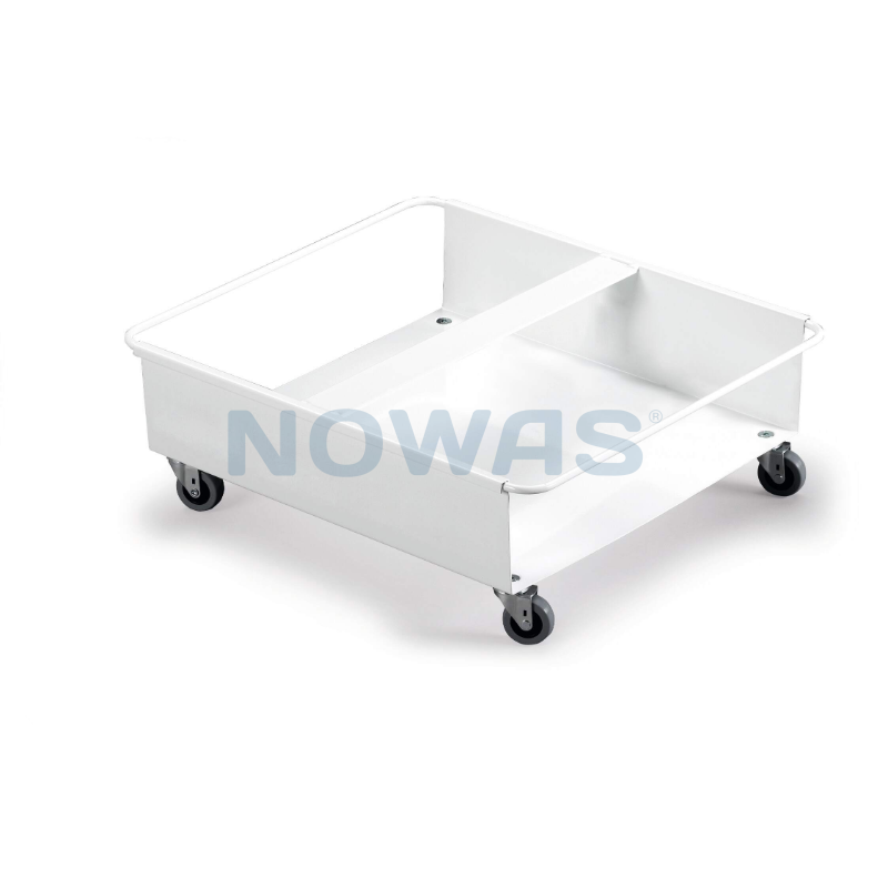 Trolley i hvidlakteret metal. Denne vogn har 4 svingbare hjul.