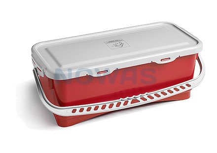 Leveres inklusiv låg der lukker hermetisk til, og holder på vandet ved forfutning af rengøringsmopper.