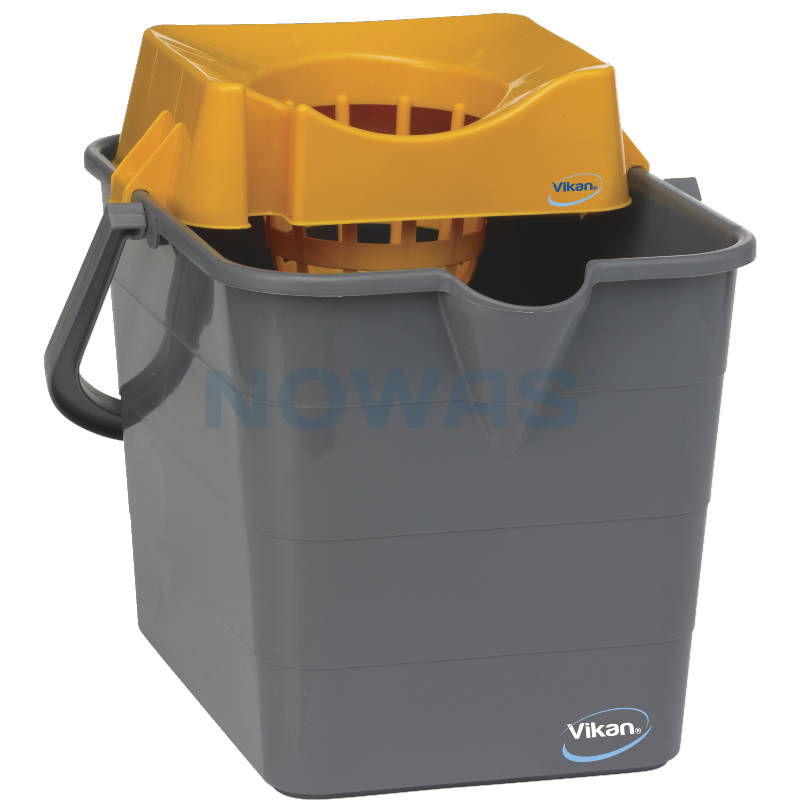 Solid 15 liter gulvspand med vrider til Vikan ErgoClean minimoppe-rengøringssystem, som er velegnet til rengøring af små arealer, rengøring af svært tilgængelige steder og vask af kanter i forbindelse med rengøring med gulvvaskemaskiner.