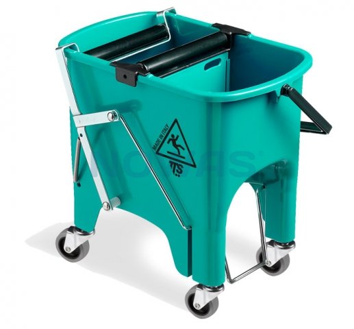 Denne rengøringsspand er opdelt i 2 sektioner, så der er plads til henholdvis rent vand og beskidt vand. Denne moppespand passer til klapbar fremfører (varenummer T0880).