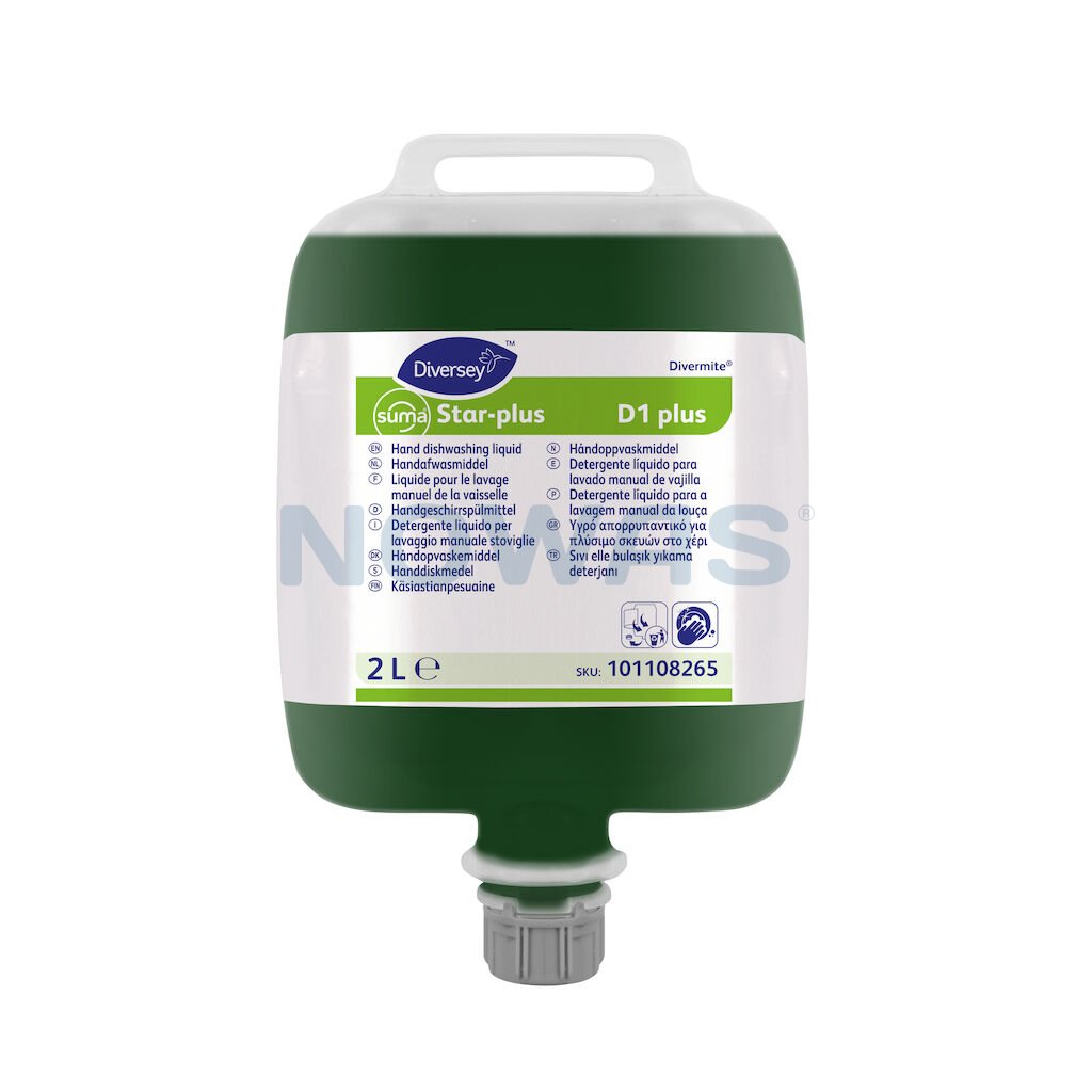 Suma Star plus D1 plus og Suma Star plus D1 er et højkoncentrerede neutralt flydende håndopvaskemidler, velegnet til rengøring af alt køkkenudstyr. Produktets optimale sammensætning af an- og nonioniske tensider bevirker, at fedt og fastsiddende madrester fjernes effektivt og gør efterskylning nem og stribefri. For at opnå korrekt dosering af Suma Star plus D1 plus og Suma Star plus D1 skal dosering ske gennem henholdsvis Diverflow med Surelink og Diversey Divermite Dispenser.