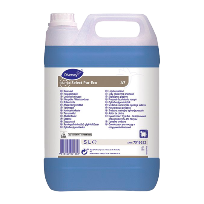 Suma Select Pur-Eco afspændingsmiddel til maskinopvask. Suma Select Pur-Eco er et koncentreret lavtskummende afspændingsmiddel der sikrer hurtig tørring samt stribe- og pletfri resultater. Den koncentrerede formulering giver fremragende brugsøkonomi.