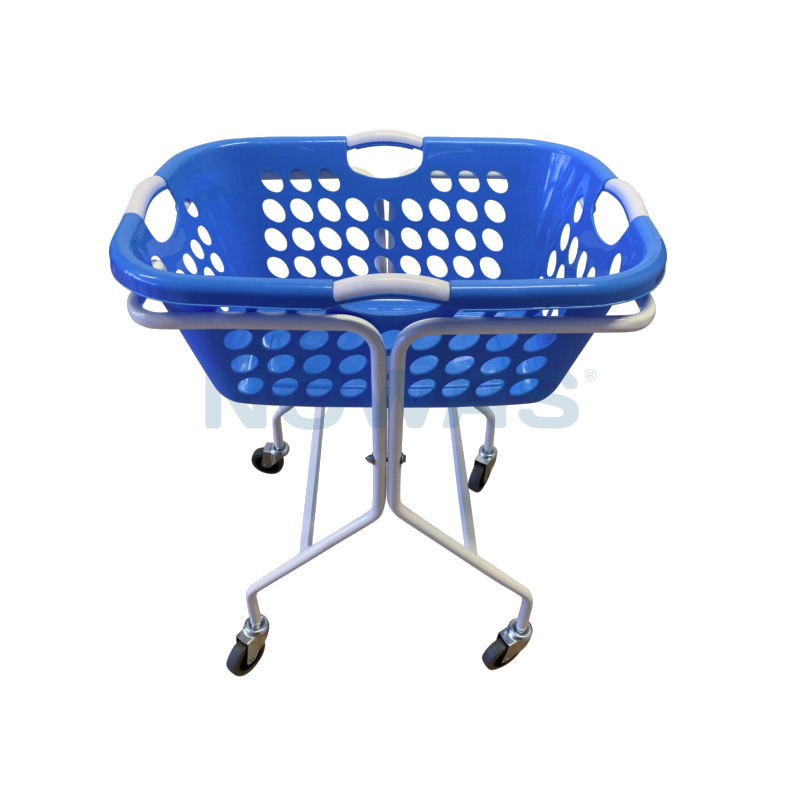 Vogn med kurv, til transport eller opbevaring af vasketøj, blå, med 4 greb til nemmere løft.