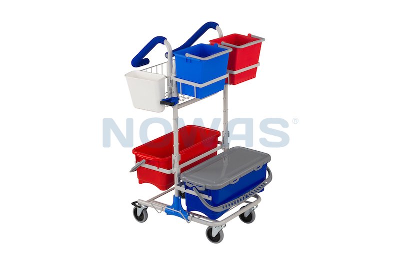 Denne rengøringsvogn fra DIT er både ergonomisk og miljøvenlig. Det er den fordi DIT rengøringsvognen har Mop Box System. Det er konstrueret til at kunne medbringe mopper og klude, som opbevares i de lukkede mopboxe for at bevare den ønskede fugtighed. Derved undgår man at vride sine klude og man behøver ikke medbringe vaskevand. Man sparer derfor både på vand og sæbe. Der medfølger 2 x 14 ltr spande til Mop Box Systemet. Derudover får man 2 x 6 ltr spande, en trådkurv og en lille ophængningsspand.
