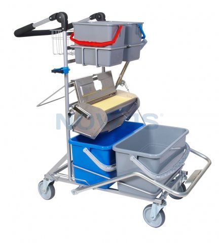 Her får du en rengøringsvogn med alt det bedste udstyr, bl.a. en lækker bredpresse med fodbetjening i meget høj kvalitet.