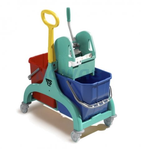 Denne rengøringsvogn er med monteret TEC moppe-vrider, 80mm. hjul samt store rengøringsspande.