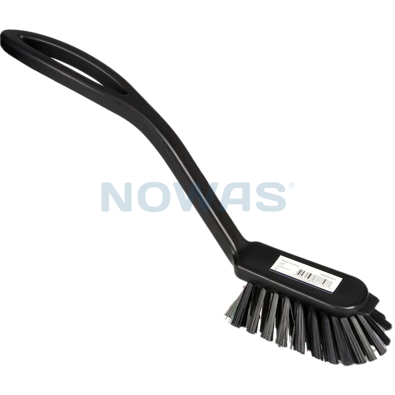 Denne fødevaregodkendte opvaskebørste har stive børstehår, der er velegnet til grov rengøring og opvask. Opvaskebørsten måler 24 cm. og er fremstillet i materialet PP og nylon. Opvaskebørsten er sort og velegent til rengøring af køkkenredskaber.