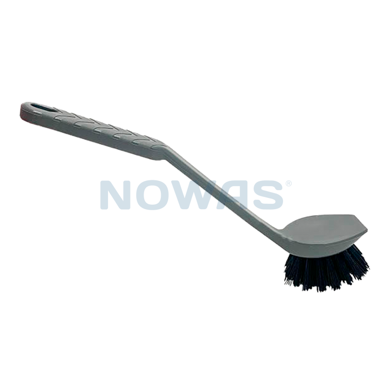 Denne opvaskebørste er udviklet i 100% genanvendt plastik. Børsten er koksgrå og meget stilren og passer derfor ind i alle hjem og instutitioner, opvaskebørsten er med sorte nylonbørstehår.
