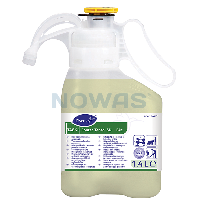 TASKI Jontec Tensol SmartDose fra Diversey, er et smart gulvrengøringsmiddel i en endnu smartere beholder. Den indbyggede pumpeanordning gør nemlig, at man let og enkelt kan sikre den korrekte dosering. På den måde undgås overdosering, hvilket set ud fra både et økonomisk-, miljømæssig- samt rengøringsmæssigt perspektiv er klart at foretrække.