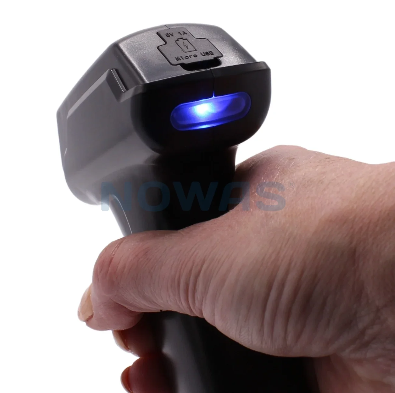 - Blåt lys indikerer tilstrækkelig batteri, rødt lys betyder opladning nødvendig