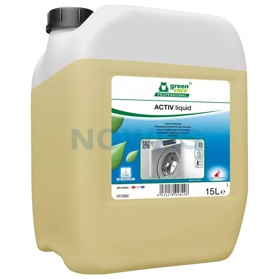 ACTIV liquid er et koncentreret universelt vaskemiddel, der sikrer en effektiv og skånsom vask selv ved lave temperaturer helt ned til 30 °C. Med fokus på bæredygtighed respekterer produktet de naturlige biologiske cyklusser og bidrager til både et sundt indeklima og rengøringspersonalets sikkerhed.