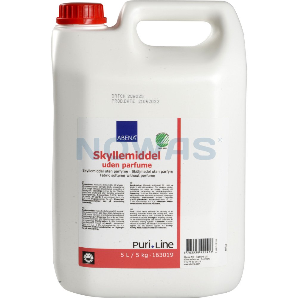 Abena Puri-Line flydende skyllemiddel til tøjvask, uden parfume eller farvestoffer. Dette skyllemiddel er beregnet til enten manuel eller automask dosering. Skyllemidlet fra Puri-Line har en antistatisk effekt og gør tøjet blødt, behageligt og let at stryge.