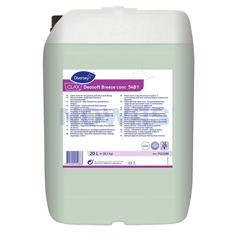 Clax DeoSoft conc er et koncentreret, flydende tekstilskyllemiddel med indbygget teknologi, som fjerner dårlig lugt i tekstiler. Specielt formuleret til anvendelse på erhvervs- og plejehjemsvaskerier.